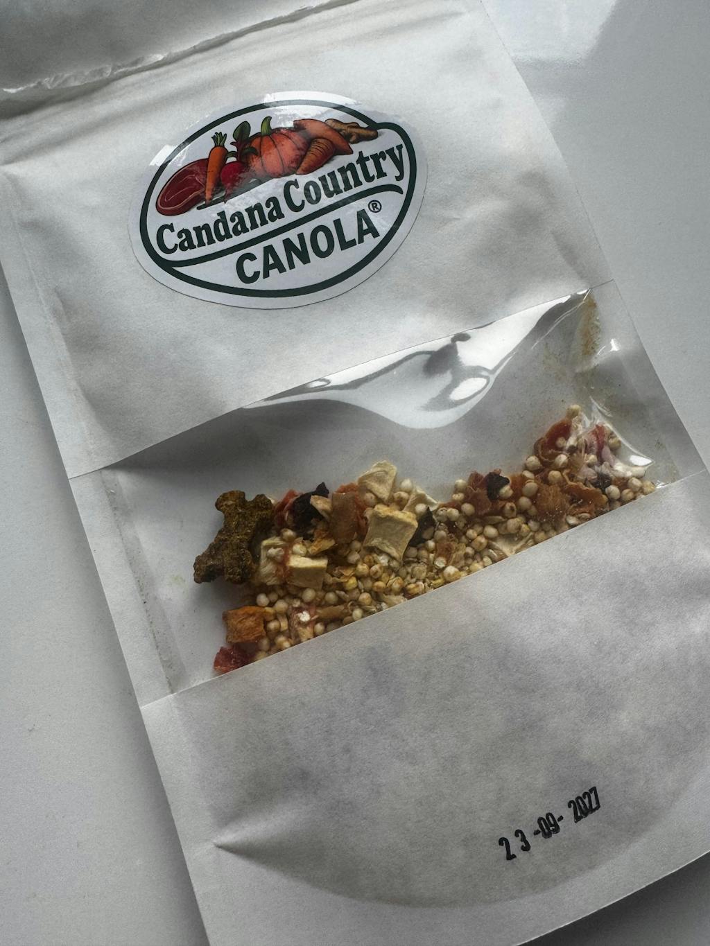 Candana Country Canola je prehranski dodatek za pse narejen iz organsko pridelane kvinoje in sveže zelenjave ter svežega visokokakovostnega govejega mesa, brez dodatkov in konzervansov ali drugih polnil ter sušena na zraku, tako da se hranila, s katerimi je bogata, čim bolje ohranijo in pomagajo vašemu psu da ostane zdrav in vitalen.